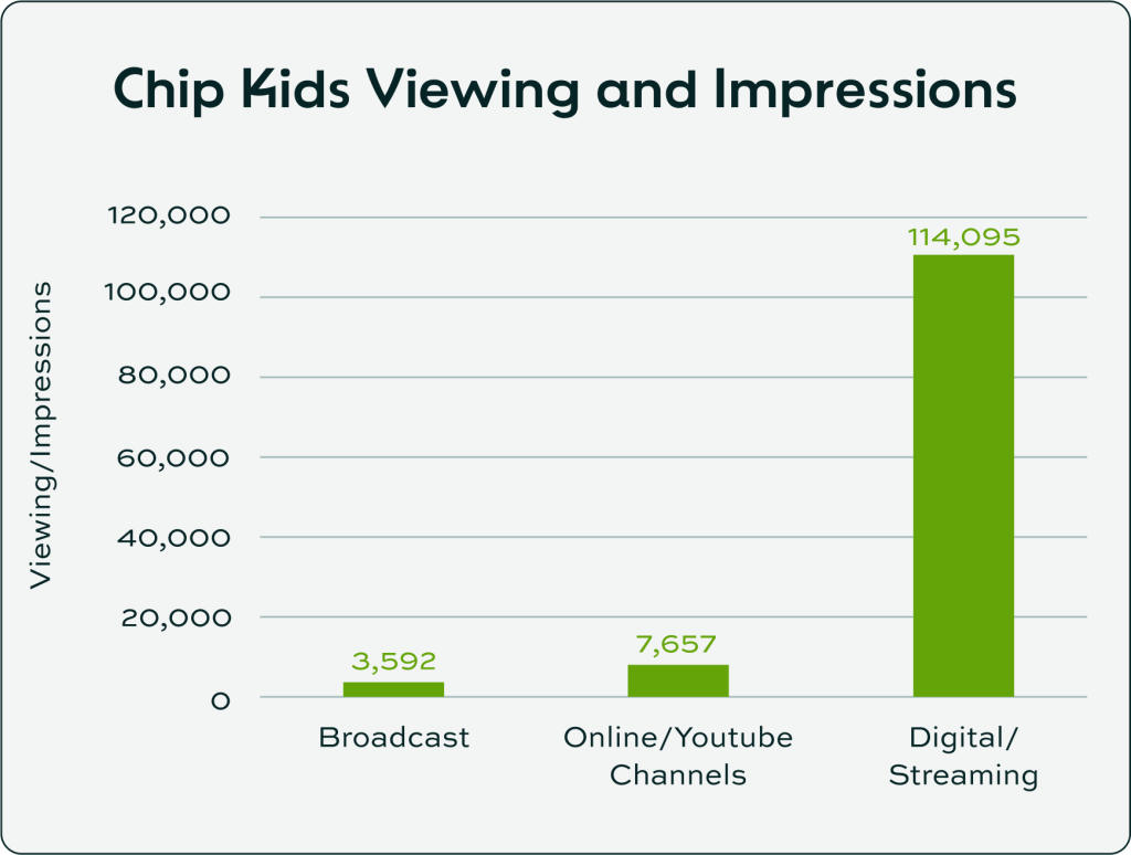 Through this vital partnership, Chip Kids content achieved over 115,000 streams, clicks, and views.